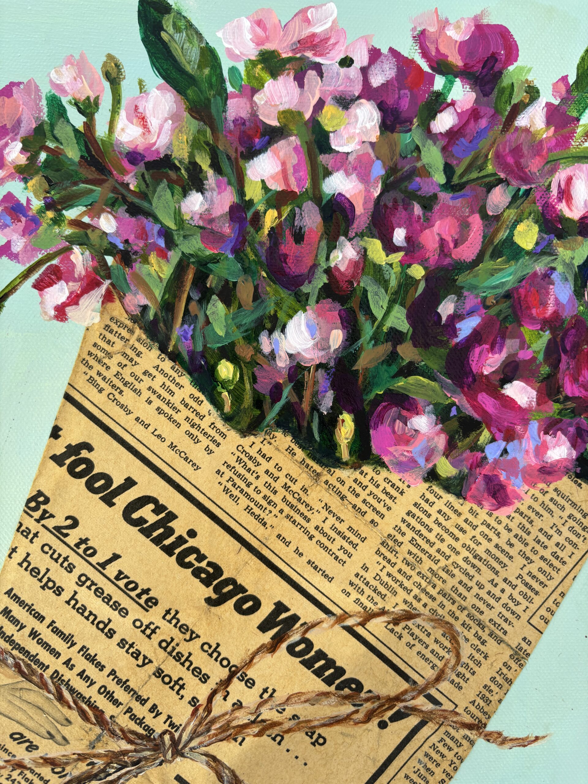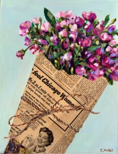11 x 14 Acrylic mixed media with vintage Chicago Tribune from 1944